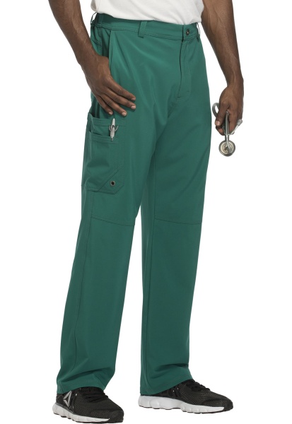 Мужские брюки прямого кроя идеально подойдут для ежедневного использования. Оснащены внутренней функциональной кулиской, эластичным поясом на спине, шлевки позволяют носить модель с ремнем. Удобная застежка-молния. Функциональные карманы: два передних классических брючных кармана, два кармана на бедрах. Правый двойной карман с петлей для бейджа, левый прорезной карман, задний накладной карман.