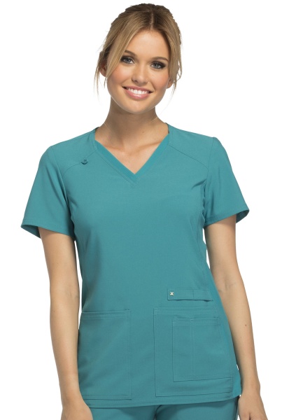 Коллекция iFlex от бренда Cherokee топ с V-образным вырезом в современном стиле, два передних накладных кармана, карман для ножниц, правый набедренный карман и петля для инструментов. Петля для бейджа.