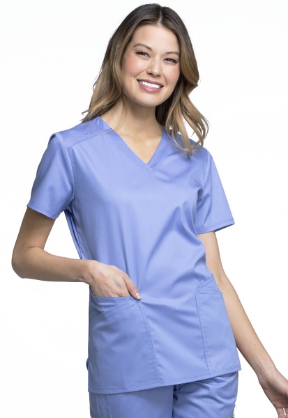 Топ с V-образным вырезом в современном стиле с передней горловиной и задними вставками из эластичной трикотажной сетки в тон, а также перфорированные сетчатые кокетки на подкладке для стиля и комфорта. Также имеются передние накладные карманы (левый с подвеской с логотипом), внутренний карман и боковые вентиляционные отверстия.